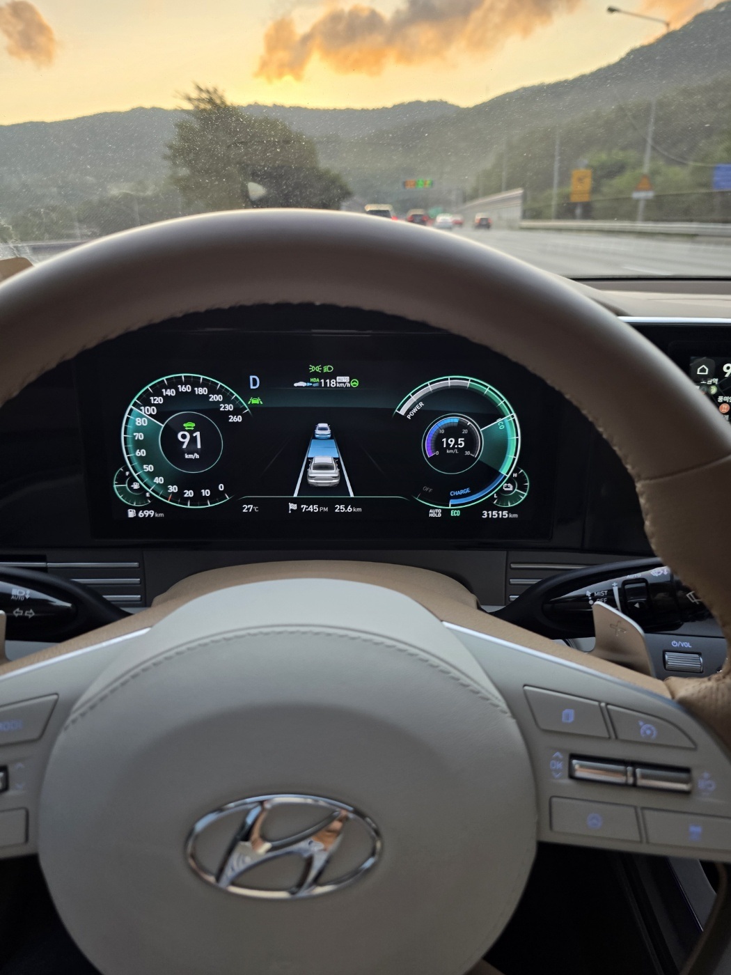 신호 대기 중에도 엔진 소음이 없어 쾌적합니다. 특히 캘리그래피의 HDA 스마트크루즈 옵션은 올림픽대로, 강변북로 출퇴근