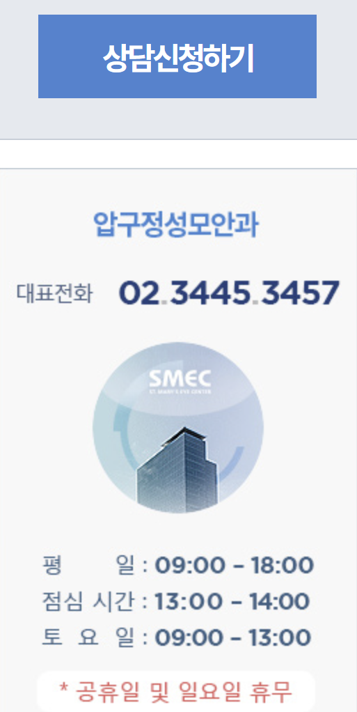 정확한 진단과 편안한 상담을 원하신다면, 압구정성모안과와 함께하세요.