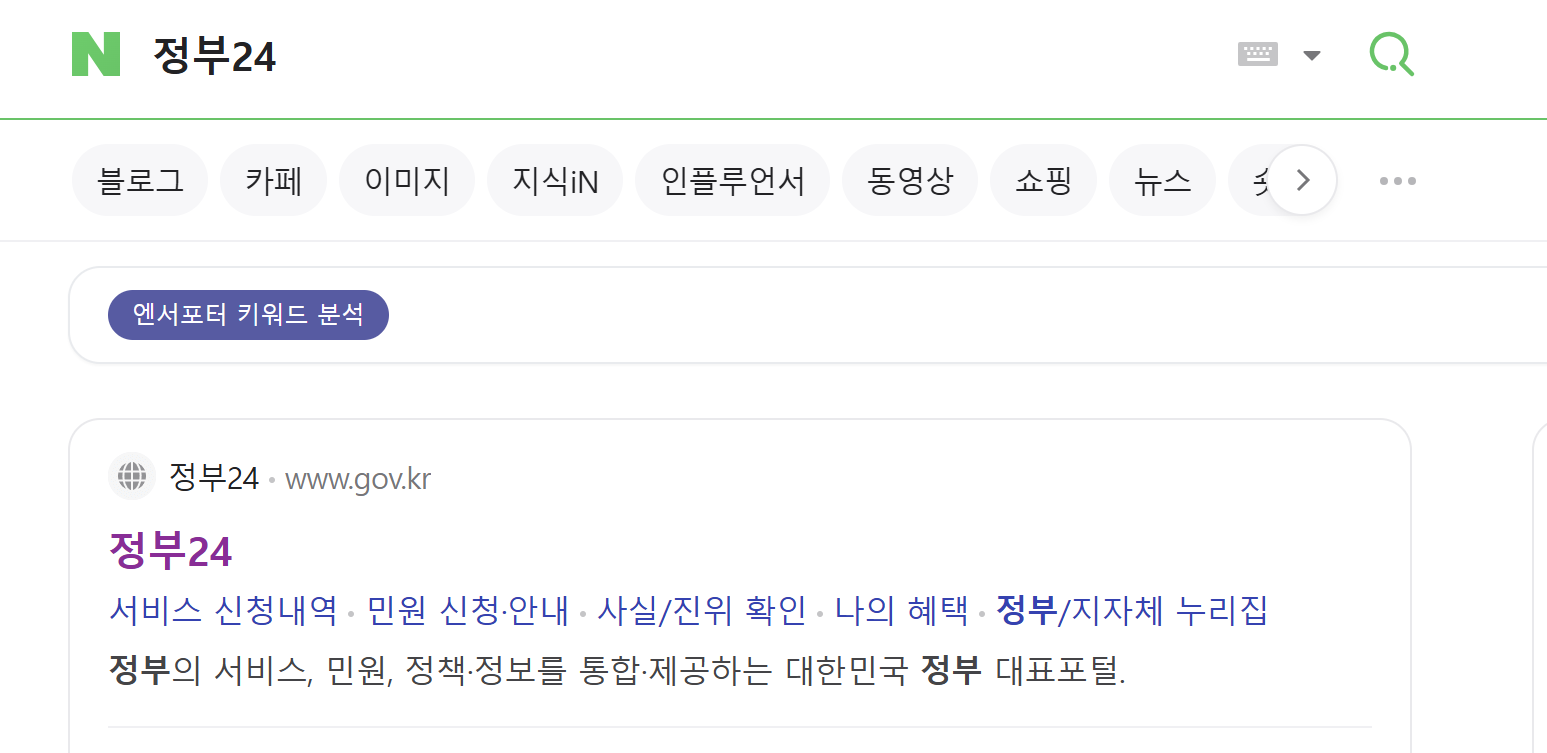 우선 포털에 "정부24" 검색 후 접속해 주세요
