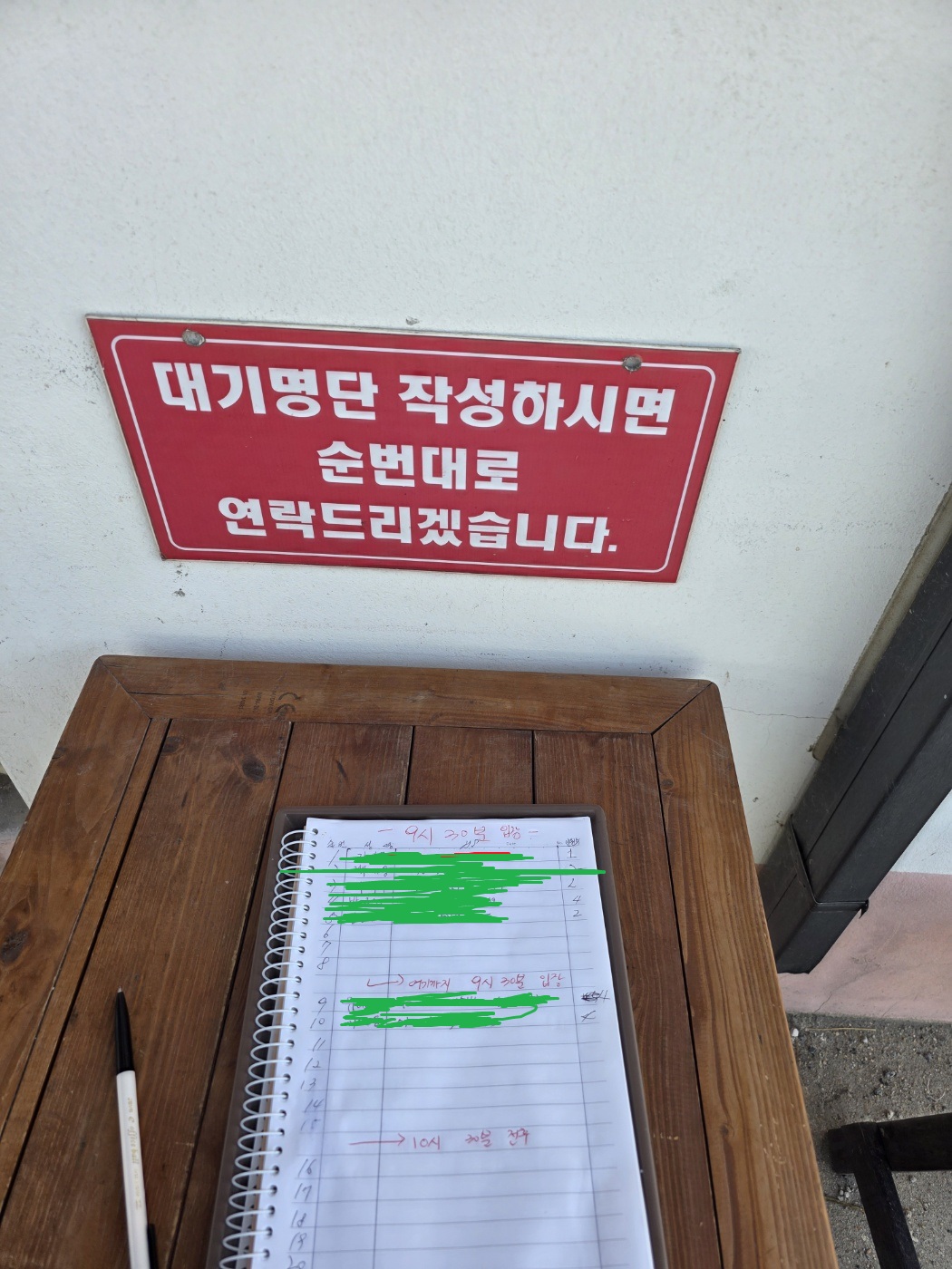 - 도착 후 웨이팅 작성필수 : 가게 도착 후 문 앞에 있는 웨이팅 노트에 꼭 작성 하셔야 합니다. 첫 타임을 제외하고는 꼭 해당시간에 들어가는건 아니고, 앞에 들어간 팀이 나오면 순서데로 입장하니 참고 부탁드립니다.